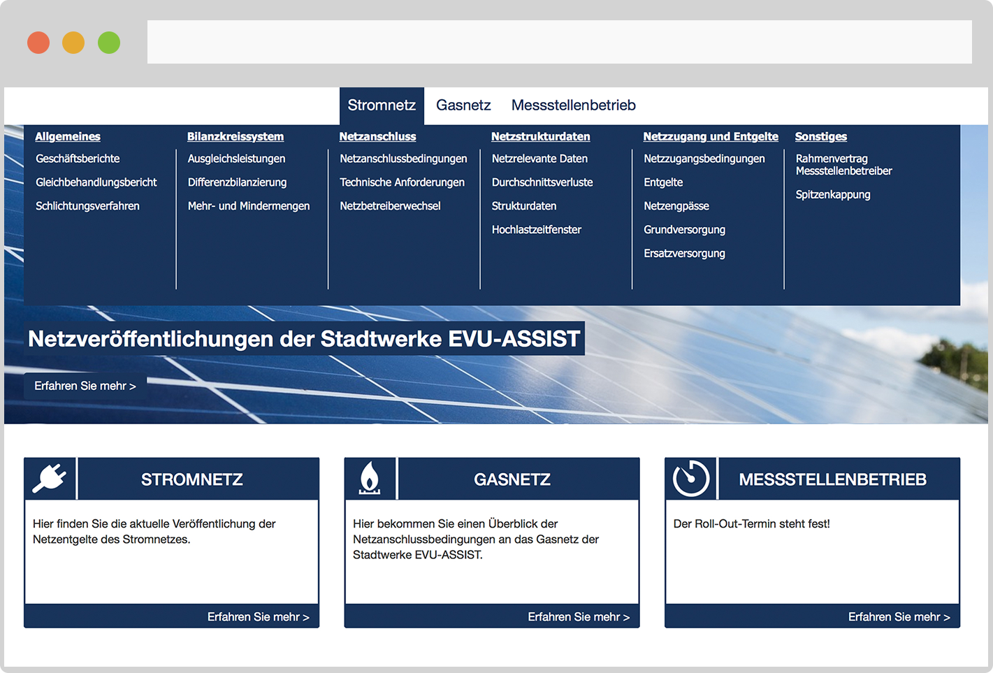 Exklusive Schnellzugriffe schaffen eine Startoberfläche nach Ihren Präferenzen. Ganz gleich, ob Sie Gas-, Stromnetzbetreiber oder Messestellenbetreiber sind, die Website passt sich Ihren Bedürfnissen an.
